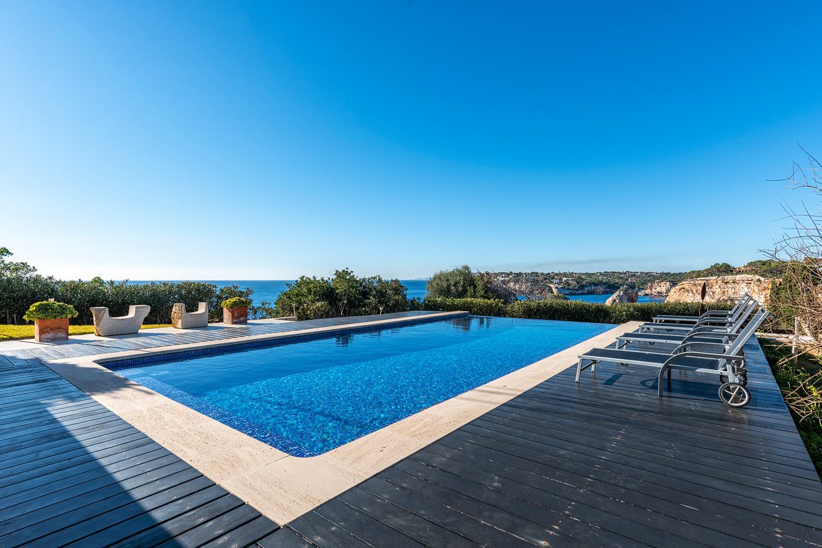 In the Mediterranean garden, an infinity pool seems to flow into the sea, and on the spacious sun terrace you can enjoy the Mallorcan sun to the fullest.