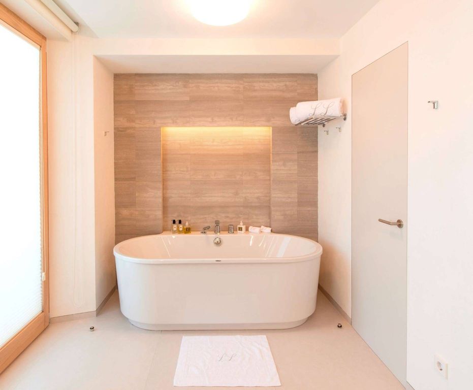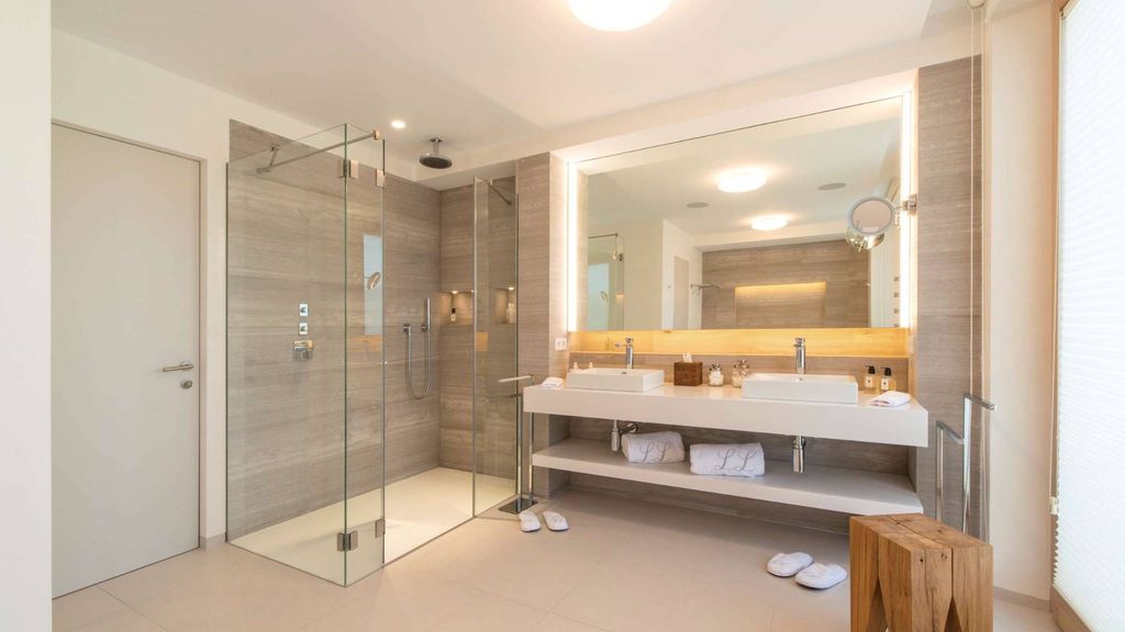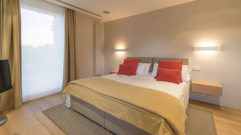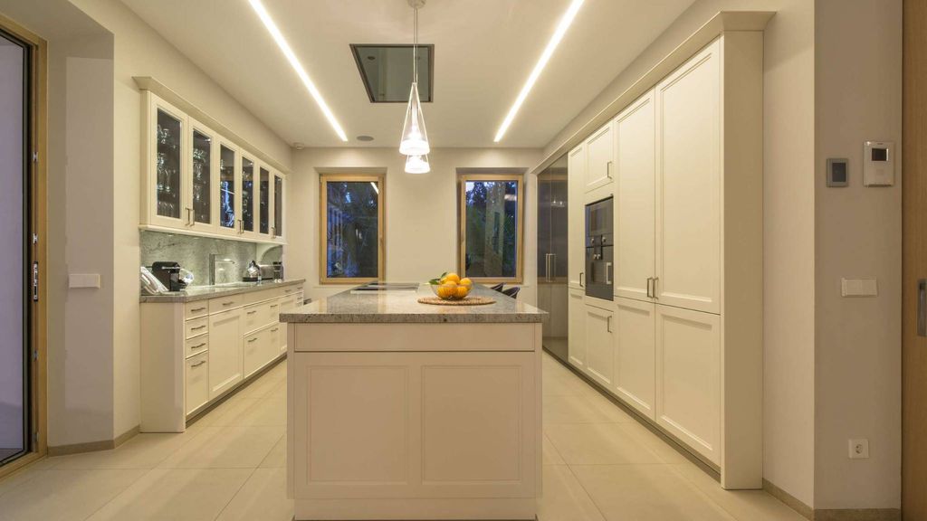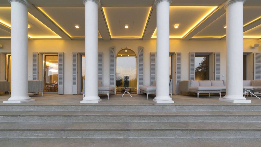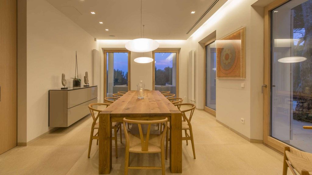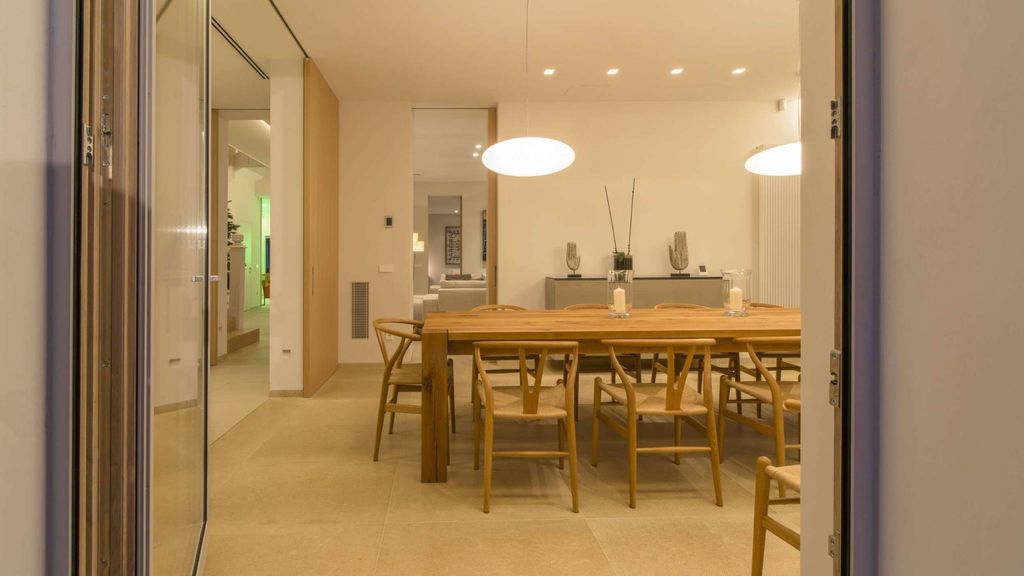 Among its many amenities are a 20×8 meter saltwater pool, KNX home automation, radiators and underfloor heating in the bathrooms, and best quality windows.